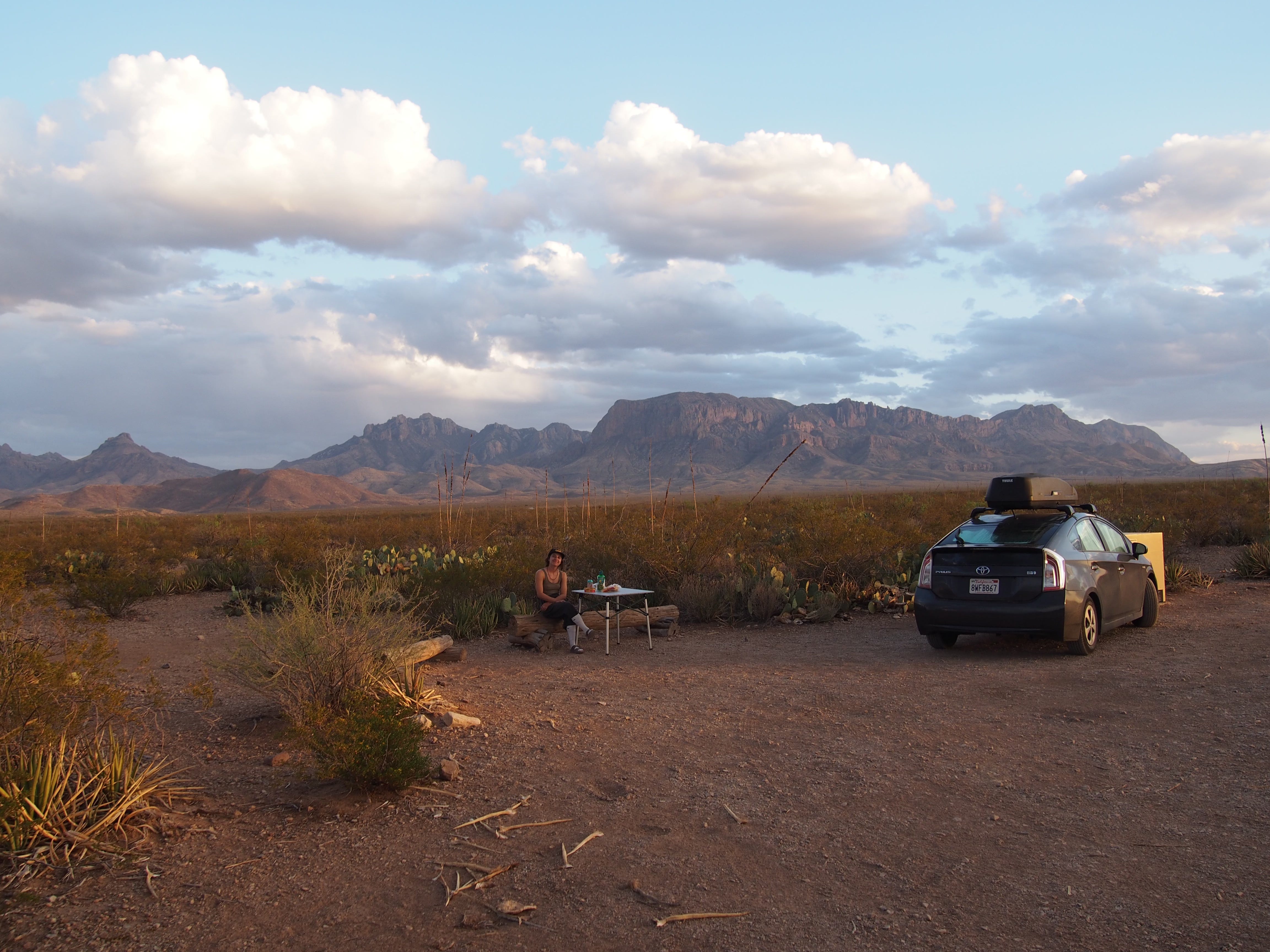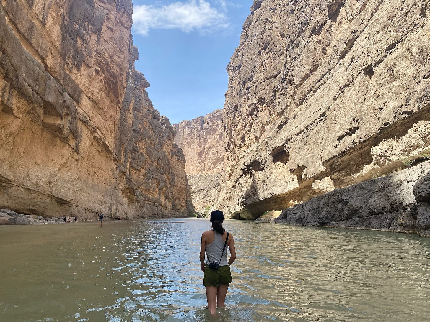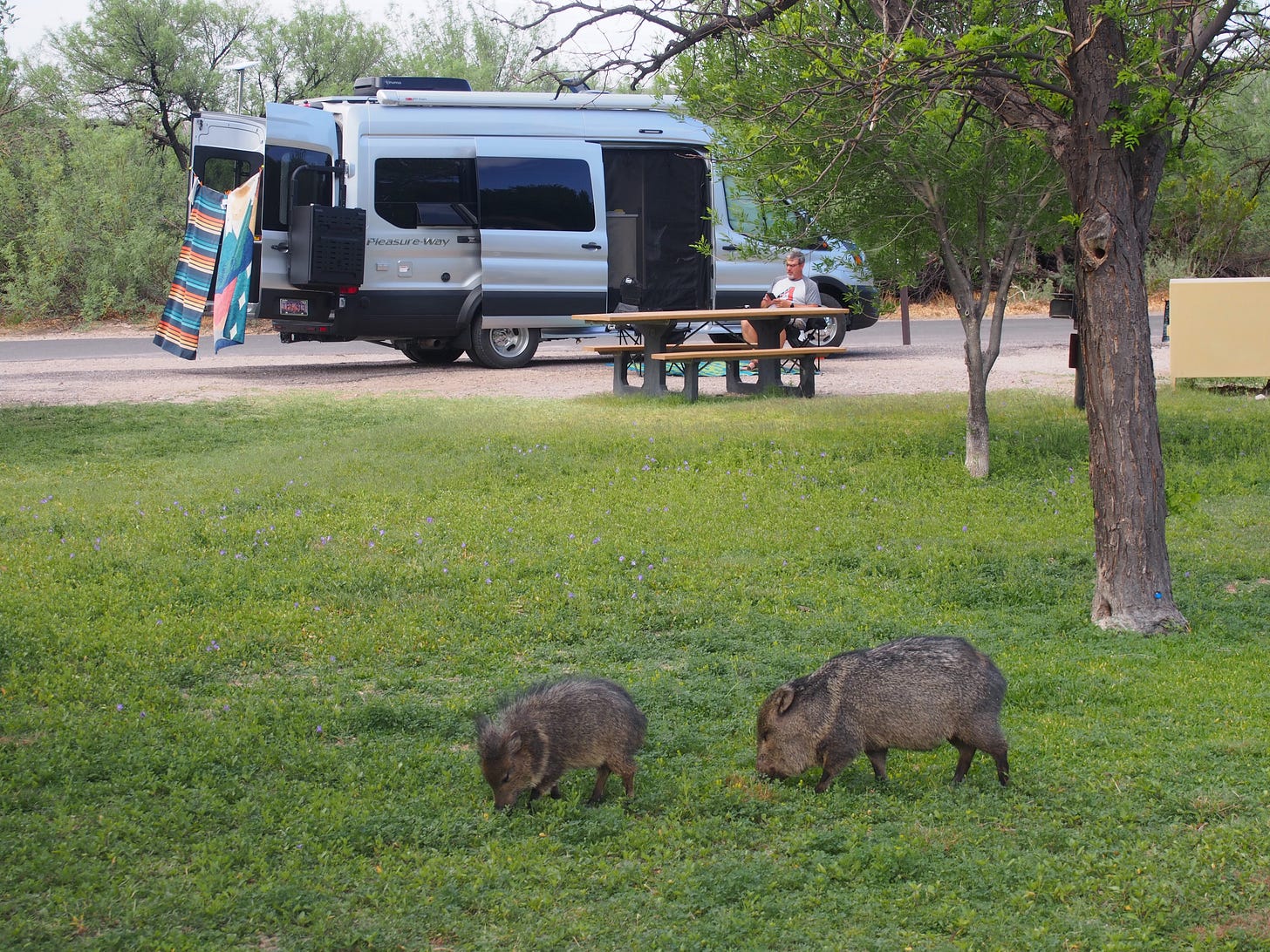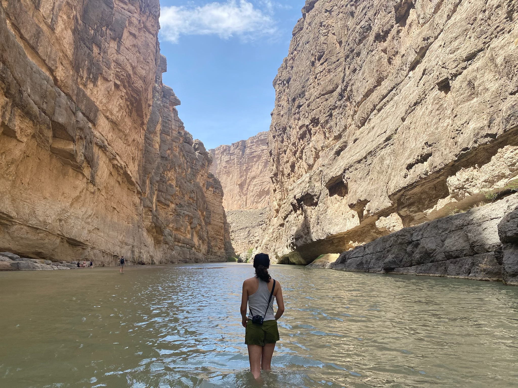 Then we went to big bend national park! the most vast and magnificent park yet. it was super worth the out of the way journey to spend time here. the “backcountry camping” was rustic (basically a patch of desert off a bumpy dirt road), but the peace and quiet was awesome. we did a great hike into Santa Elena canyon and waded across the Rio Grande into Mexico. apparently DHS wants to build a border wall here which is crazy and dumb and we saw lots of posters and signs saying “no big bend wall”. anyways, a highlight of the park was the natural hot spring on the edge of the rio grande - we had the full spectrum of hot, warm, and cold water available with a beautiful view. that was hard to leave! they also had a fascinating outdoor dinosaur exhibit with a variety of fossils found in the park, a geological timeline of the area, and a model of the biggest flying dinosaur ever discovered. our stay was complete when we finally saw some javelinas! they are super cute pig-looking guys that live all over the desert.
